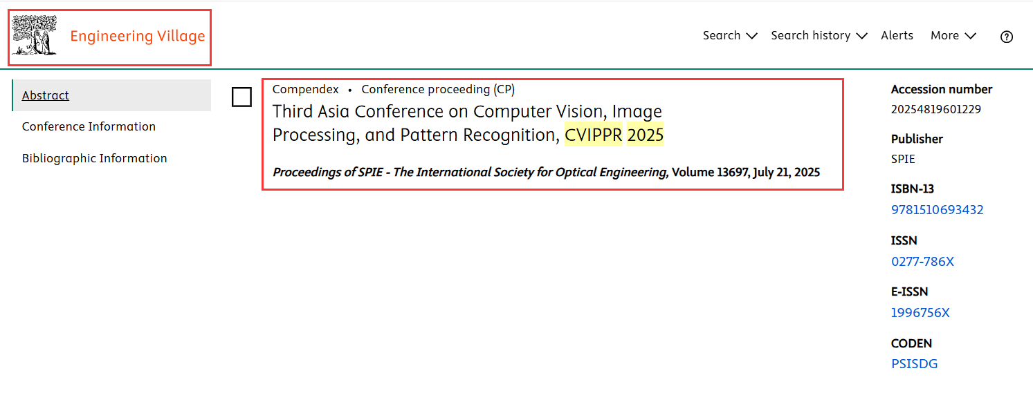 MLANN 2025 (workshop of CVIPPR) all accepted papers have been published within 2 months after the conference and indexed by Ei Compendex and Scopus!